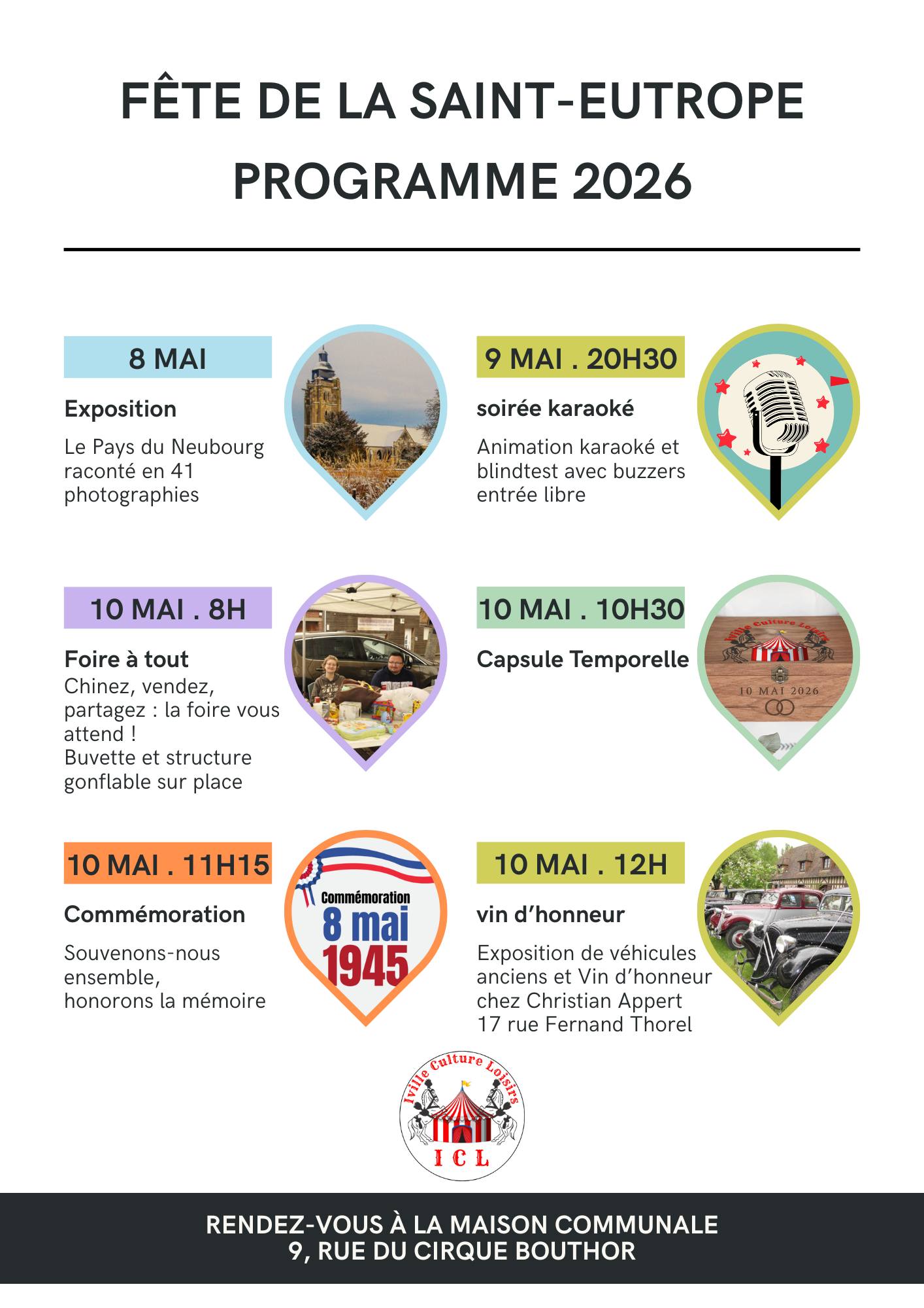 La fête Saint-Eutrope d’Iville se déroulera du vendredi 8 au samedi 10 mai 2026, avec un programme très riche :